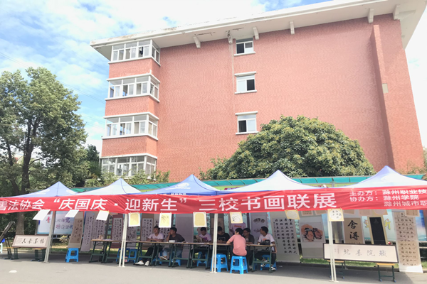 为了丰富校园文化生活,推进校园文化建设,展现学生积极向上的精神风貌,在新中国成立70周年、金沙威尼斯官网迎新之际,书法协会于9月20日至9月21日在女生宿舍1号楼楼下特举办“庆国庆,迎新生”三校书画联展,本次活动由金沙威尼斯欢乐娱人城主办,滁州学院、滁州城市职业学院承办。