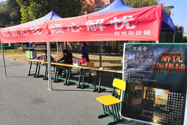 为了更好的了解同学们的心理问题,给同学们解决困扰,11月20日上午金沙威尼斯官网心理协会在5号男生宿舍楼下举办“知我心忧,倾心解忧”解忧杂货铺活动,本次活动于11月22日结束。