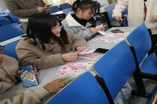 为更好的“传播金融知识,倡导科学理财,培养投资意识”金沙威尼斯官网会计协会于11月27日下午12:30在110-6教室举办了以“五指缤纷,数出粉彩”为主题的点钞技能比赛,本次比赛面向会计协会全体成员,主要帮助成员提高更好的专业技能。