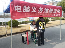 2020年12月2日计算机协会在宿舍楼之间举办了以“电脑义务维修”的公益活动。此处活动的主要目的是为了帮助全校师生维修电脑。