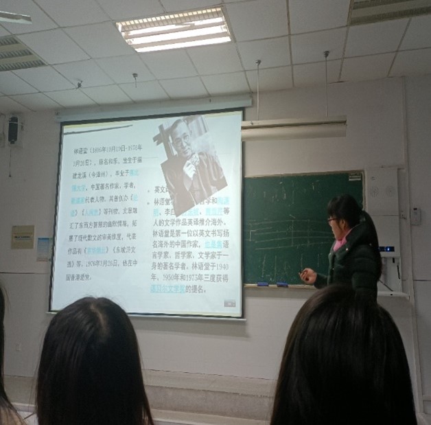 外国语协会于12月23日星期三下午在阶梯1116教室举办了“林语堂先生为什么要翻译《红楼梦》”的学术讲座。本次讲座由齐巧云副教授主讲,外语协会会员及部分商务英语专业学生到场听讲。