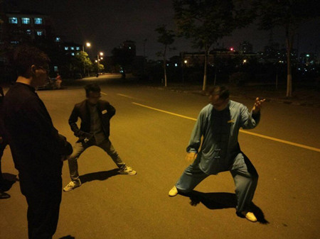 5月2日晚,金沙威尼斯欢乐娱人城传媒工程系闻建强主任来到乾清太极社训练场地观看训练,并亲自指导教学。