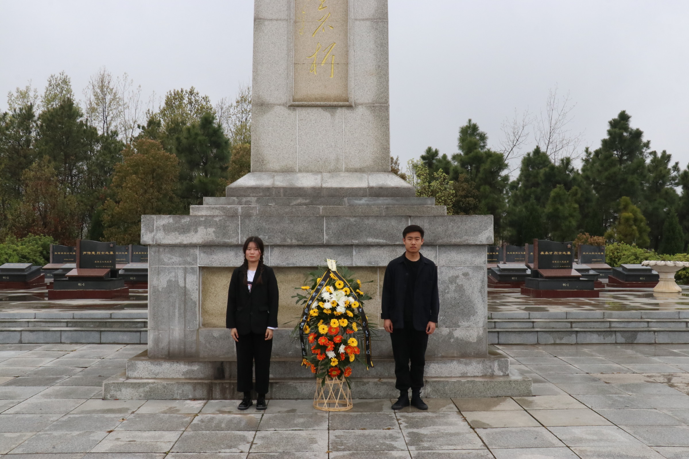祭奠仪式开始,首先,全体人员庄严肃穆的在革命烈士纪念碑下默哀以慰先烈之魂。在祭扫仪式中,全体人员瞻仰革命烈士纪念碑,默哀怀念、敬献鲜花,并向纪念碑行鞠躬礼,表达对烈士的崇高敬意和深切悼念之情。然后由老师讲述了烈士们的英雄事迹,新中国革命胜利来之不易,扶今往昔,对革命先烈表达了无限的敬仰和无尽的哀思。最后,由老师的带领下同学们参观了纪念馆,聆听我党的伟大革命历史和革命先烈的丰功伟绩,将先烈的事迹深深烙印在内心深处,铭记这段伟大而不平凡的民族记忆。
