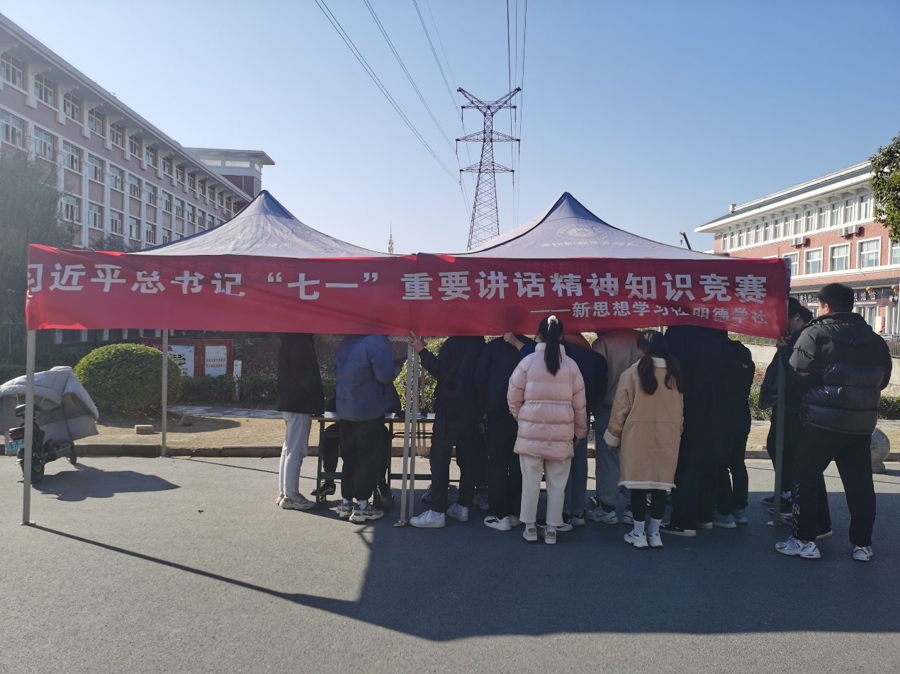 为热烈庆祝中国共产党成立100周年,深入弘扬宣传习近平总书记“七一”重要讲话精神,习近平新时代中国特色社会主义思想学习社与明德学社于2021年11月28日在5103教室举办习近平总书记“七一”重要讲话精神知识竞赛。