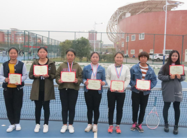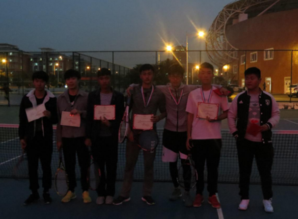 开幕式在体育部王老师和沈老师的热烈贺词下拉开帷幕。整个赛程采用初赛淘汰制复赛复活制进行,ABC三组的参赛选手分别在三片场地同时进行。经过激烈的角逐,选手们渐入佳境,个个都赛出了风格,赛出了体育精神。一个半小时后初赛赛程结束,拼搏的选手们顺利进入了复赛,选手们抱着比赛第二友谊第一的良好精神互相鼓励对方,温暖的气氛围绕着网球场。场上是对手,场下是朋友,大家的乐观精神感染着每一个人。赛程过半,选手们的对抗愈演愈烈,工作人员一丝不苟的维护球场秩序,裁判员的严谨态度又为比赛添加了几分色彩。 天色将暗,赛程全部结束。最终女子组由李雪梅,牛伟玮,谢培获得前三名,男子组则由徐鹏程,王文豪,戴明庆获得前三名。