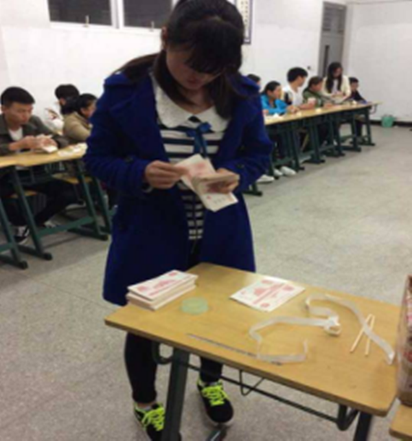 参与本次点钞的选手有100人,分为四个环节进行,第一轮,速度点钞;第二轮,限时速度点钞;第三轮,限时速度干扰点钞;第四轮,混合点钞法。选手们在紧张有序的气氛中赛出了风格! 比赛过程中,某些参赛者使用单指、多指等多种点钞方式,为比赛增添了不少亮点。经过激烈角逐,选手余结美获得第一名,王茜茜获得第二名,王莎莎获得第三名,王雨晨获得优秀奖。