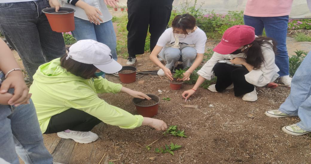 下午三点,花艺社成员到实训基地门口集合后,由老师教大家辨别花卉种类,为大家讲解种植技巧。大家认真学习,随后开始动手。种植期间,社团成员们互相帮助,齐心协力,充分发挥了不怕脏、不怕累的精神。