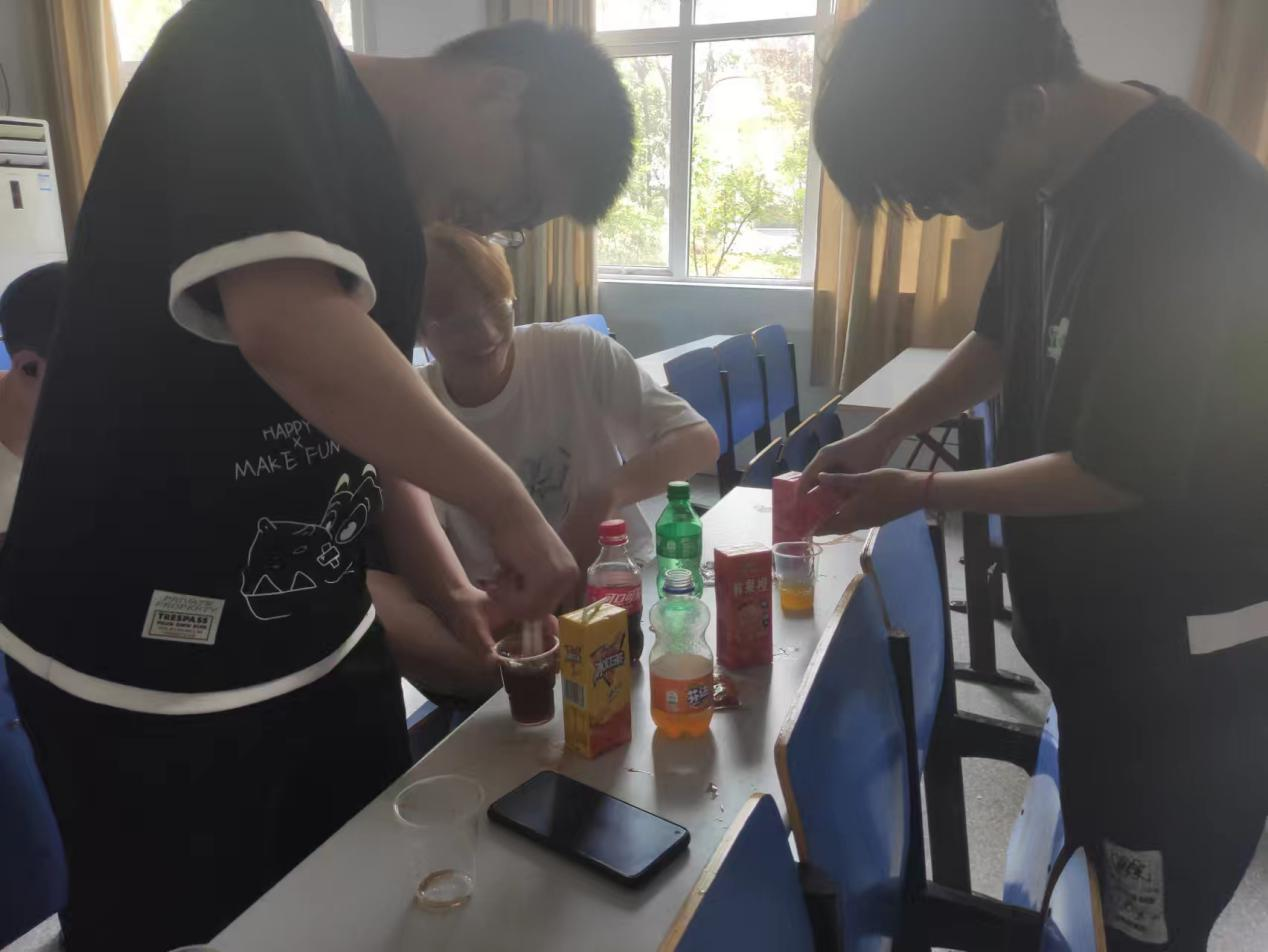 本次活动用了生活中常见的饮料,如可乐、雪碧、芬达、水蜜桃、鲜果橙、酸梅汤等等。活动开始,由一名同学将任意的饮料按照任意的比例混合。随后由另一名同学品尝、说出是有哪些饮料混合而成的。