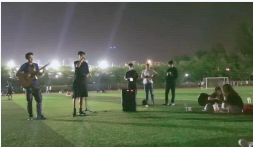 20225月119点,吉他社成员齐聚操场,在这个特殊的夏天里,吉他社的成员给同学们带来了属于夏天的快乐——草坪音乐节。