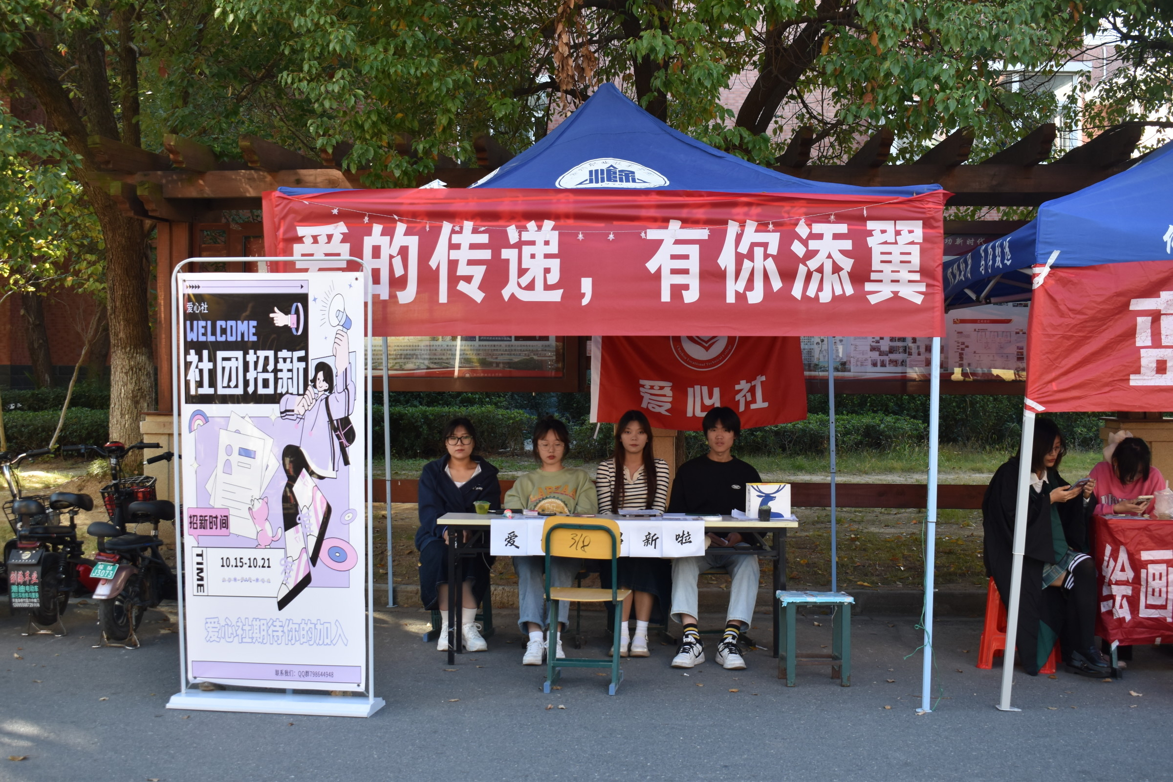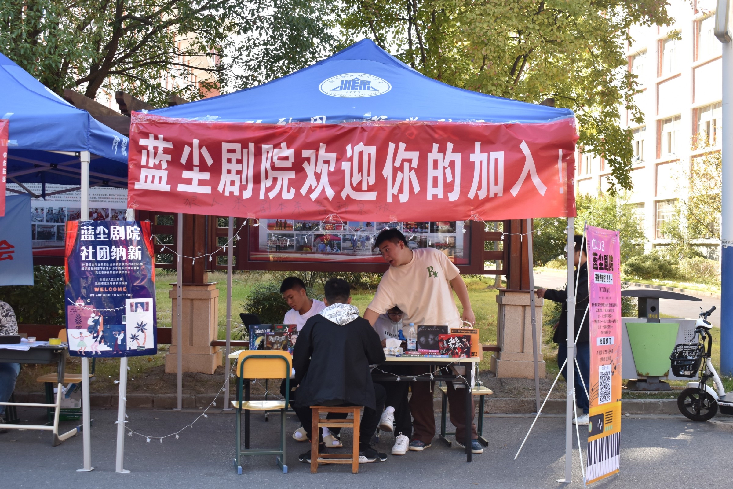 2022年10月15日,金沙威尼斯官网一年一度的社团招新活动在宿舍楼下正式拉开帷幕,参与本次招新活动的有广播站、汉服社、食品营养协会等42个社团。