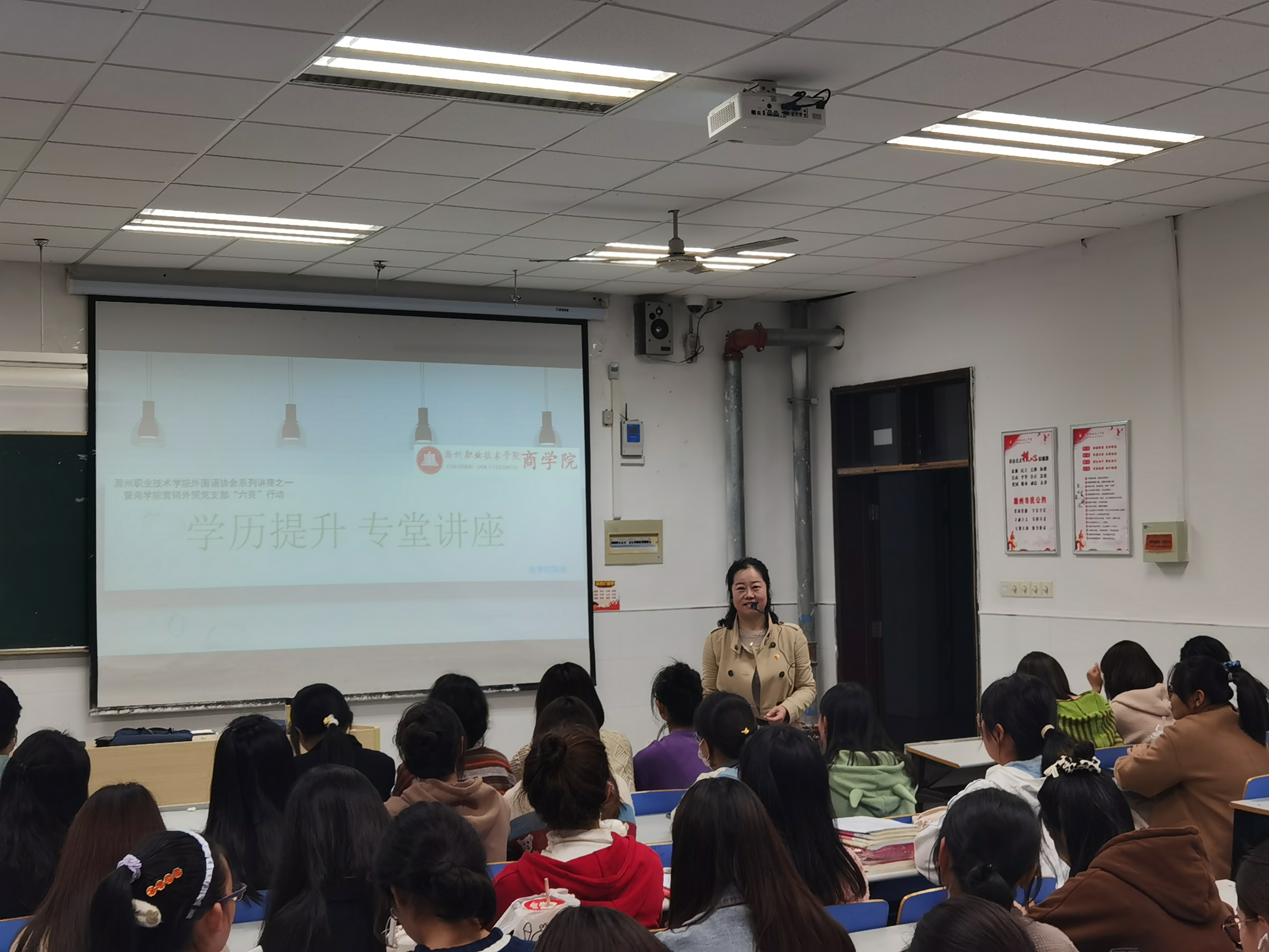 随着国家的快速发展以及高等教育的普及,社会对个人学识的要求逐步提高,拥有更高的学历,意味着我们将有更多的机会,更大的发展空间。在此形势下,为了帮助学子们更好进行专升本的规划与复习,金沙威尼斯官网外国语协会指导老师陈艳副教授于11月9日晚7点在1119为学子们开展了专升本讲座。