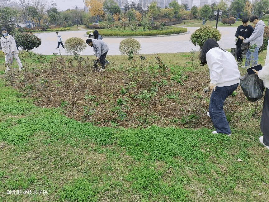 为了学习贯彻习近平总书记在党的二十大报告中提出“推动绿色发展,促进人与自然和谐共生”的重要讲话精神。2022年11月27日,滁州职业学院花艺社组织社团全体人员到乐山园、乐水园开展志愿服务活动。