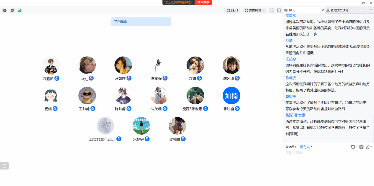 2022年12月11日旅游协会利用线上方式举办了“最美旅游线路展示”活动,本次活动由旅游协会社长方鑫苗主持开展。