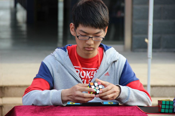 魔方比赛设有组委会、裁判席、选手席和观众席。下午16:10,在主持人的宣布下,滁职首届魔方大赛正式开始。学院副院长汪上,院团委书记王蓓蓓,院团委副书记刘杰、程诚也来到比赛现场进行观看指导。参加比赛的魔方高手个个大显身手,魔方在指尖上飞速的旋转,争分夺秒。经过初赛、挑战赛的激烈决斗,陈玄同学最后以15.09s的成绩刷新了个人最好三阶速拧记录。