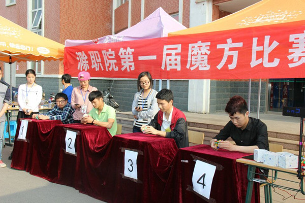 为了丰富在校大学生的课余生活,提升大学生的思维素养,给我院魔方爱好者一个展现自我的平台。2015年4月29日乒乓球协会在大学生创业孵化基地门前举办了滁职“第一届魔方大赛”。