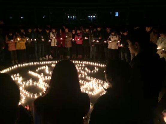 活动首先由每一位参与者将事先摆好的“爱心南京30000 1213”蜡烛点燃,当烛火全都亮起来的时候,集体对着蜡烛向遇难者默哀3分钟。之后由学生代表上台发言,将每一位悼念者的心声都诉说了出来,带着沉痛的心情同学们在写有“勿忘国耻,圆梦中华”的条幅上写下了对遇难者们的怀念。