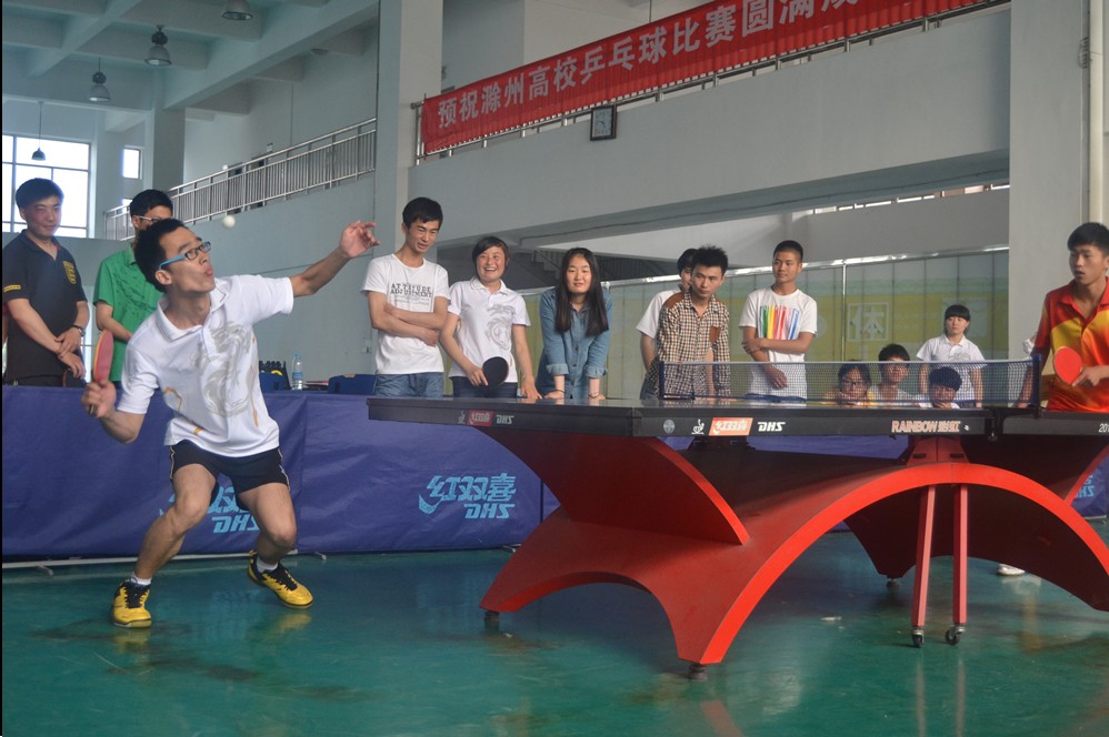2014年5月18日我院飞翔乒乓球协会参加在滁州学院体育馆举办地滁州市第五届高校乒乓球比赛。我院代表队由飞翔乒乓球协会会长吴美、张小旭,技术部部长范军强带队,李洋、陈磊、胡园、李扬同学组成男团,余振洁、周翠翠、胡婷玮同学组成女团参赛。