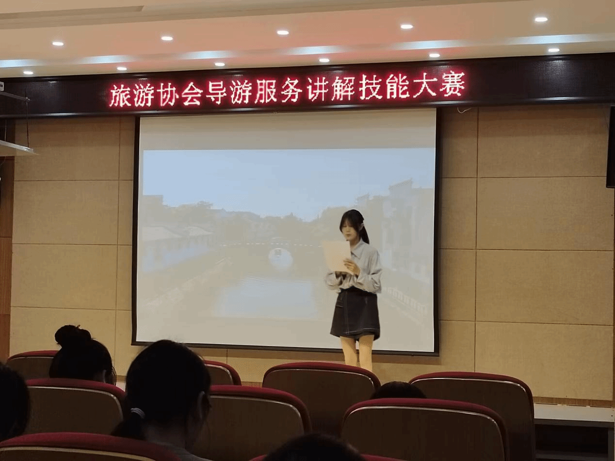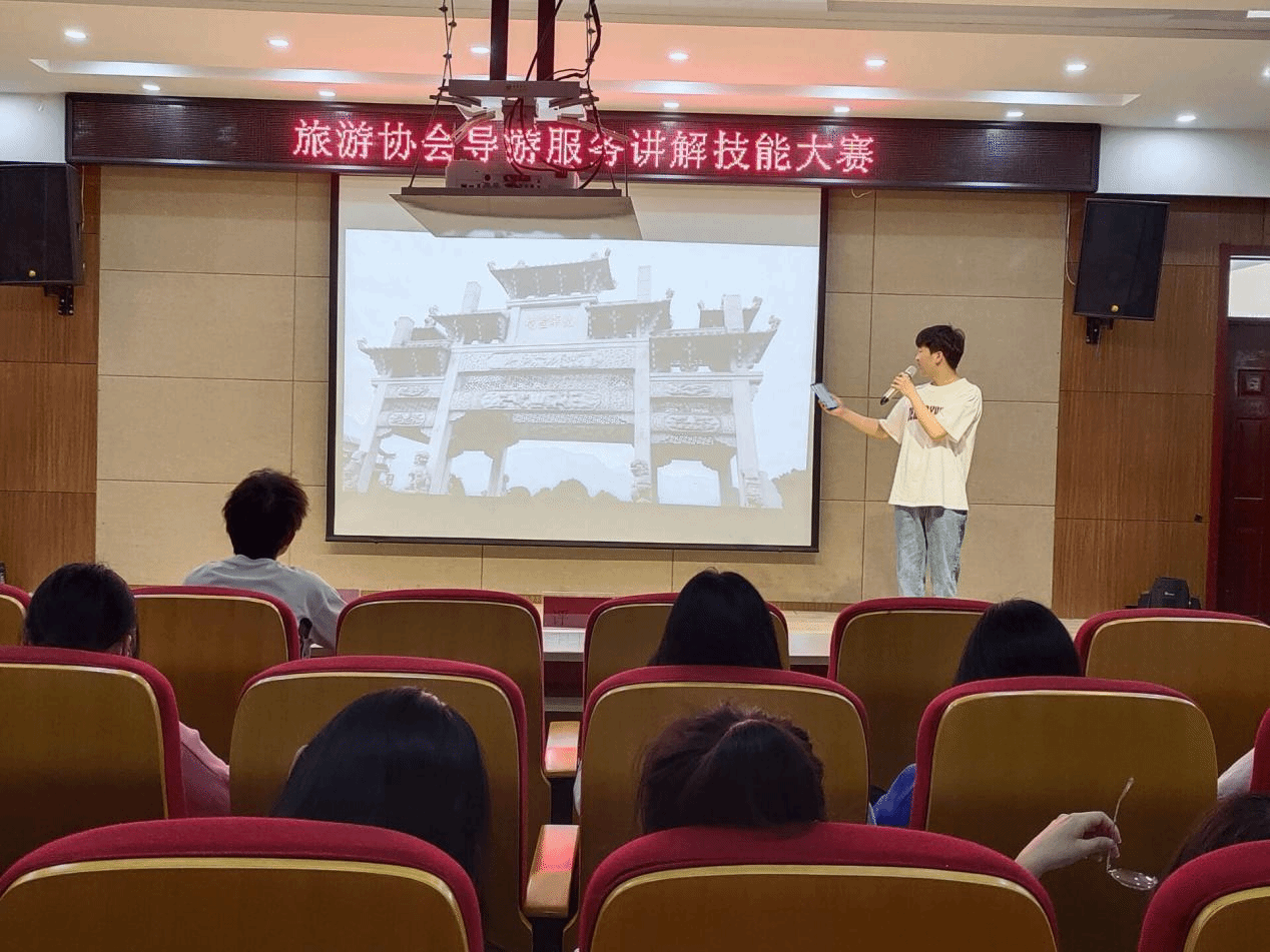 为让大学生们了解导游这个职业,培养学生专业知识的学习和职业技能的训练,旅游协会于2023年4月15日下午两点在南阶203教室开展了“导游服务讲解技能大赛”。参加本次活动的有社团指导老师徐姗、社团全体成员。