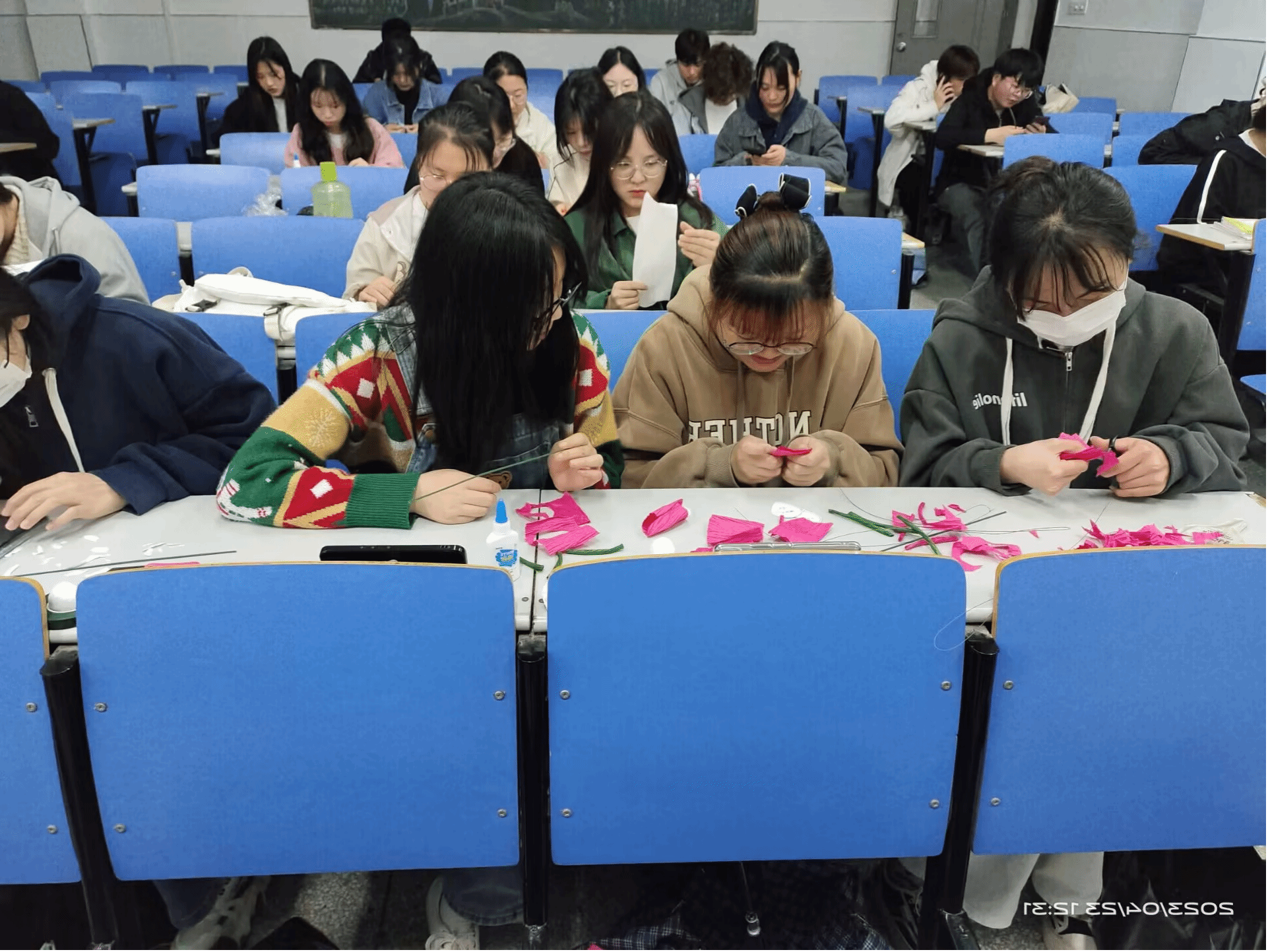 活动现场,社团负责人为参与者们准备了各种颜色和形状的纸张、剪刀、胶水等工具。随着音乐的响起,大家开始动手制作,有的制作出了精致的玫瑰花,有的做出了娇艳的牡丹花,还有的人用心制作出了可爱的小花篮。在制作的过程中,参与者们互相帮助、交流,不断磨练自己的手艺。经过努力,大家都成功地完成了自己心仪的手工花。此次活动不仅让参与者们感受到了手工制作的快乐,还增强了社团成员之间的互动和交流。
