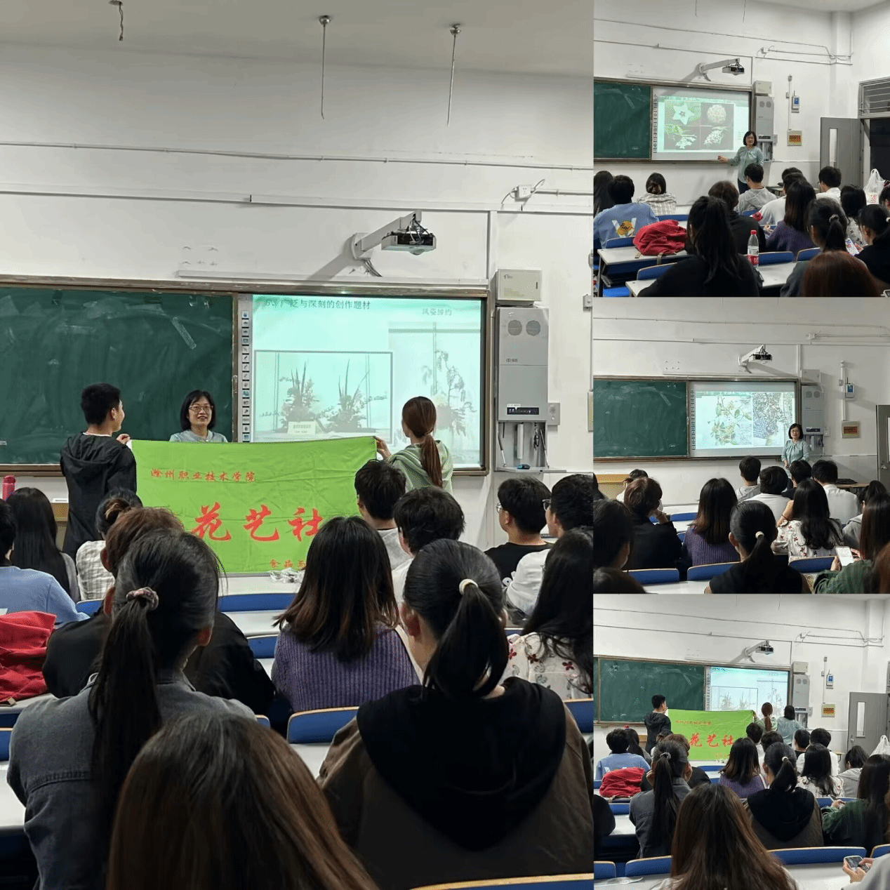 活动期间由食品与环境工程学院园林专业的老师为我们社团学生讲解花艺知识,提出同学们对花艺知识的盲区并教给我们插花的意义以及如何插花。花艺知识讲座活动的开展是为了让学生能够系统地学习花卉的基本知识和技能,进一步提高他们的审美能力和创造力,培养他们对自然和美的热爱,同时也使得他们更好地了解花卉的重要性和价值。