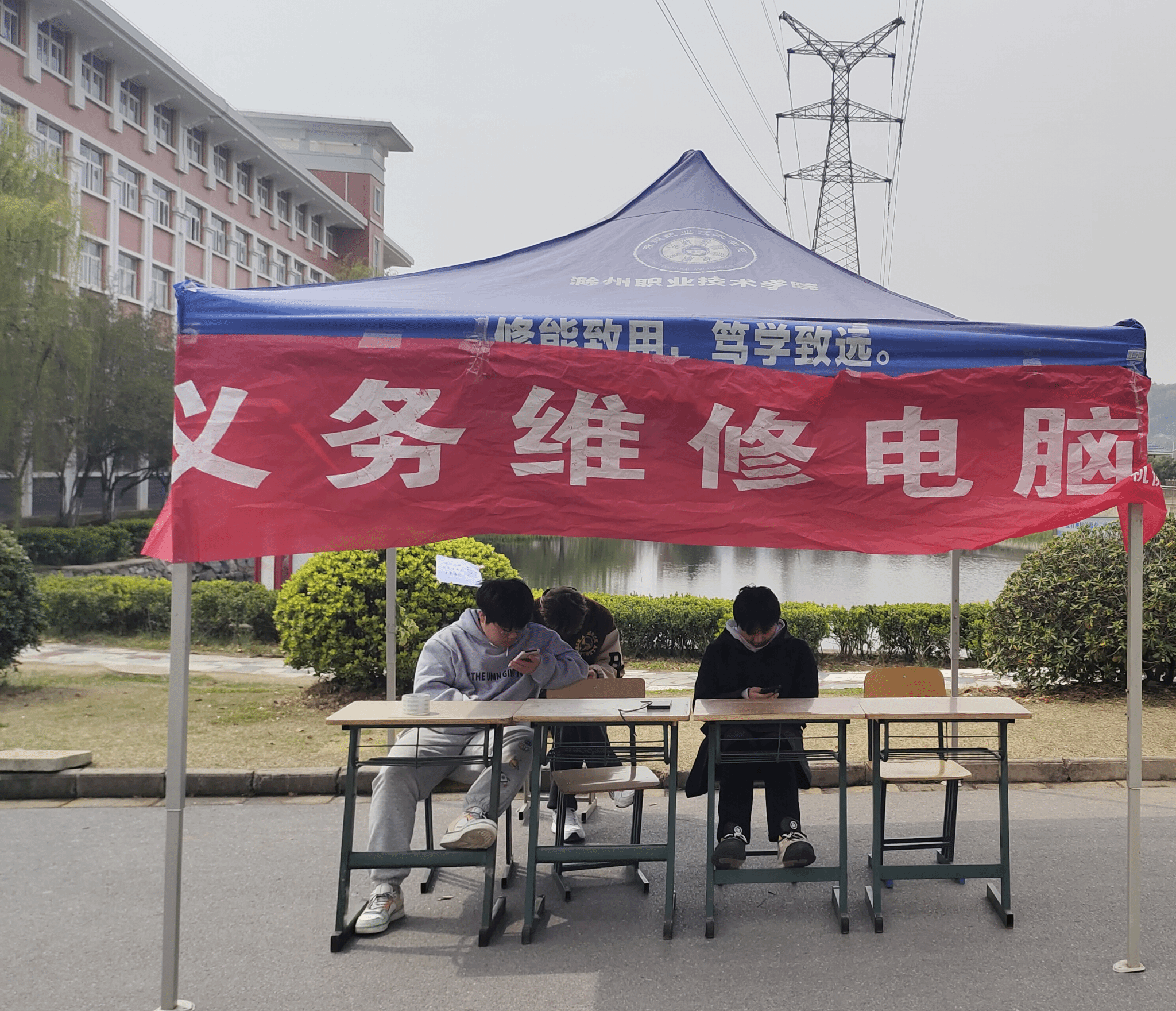 2023年3月15日计算机协会在宿舍路口举办了电脑维修活动。活动的主要内容是为全校电脑有问题的同学修理电脑,处理问题。
