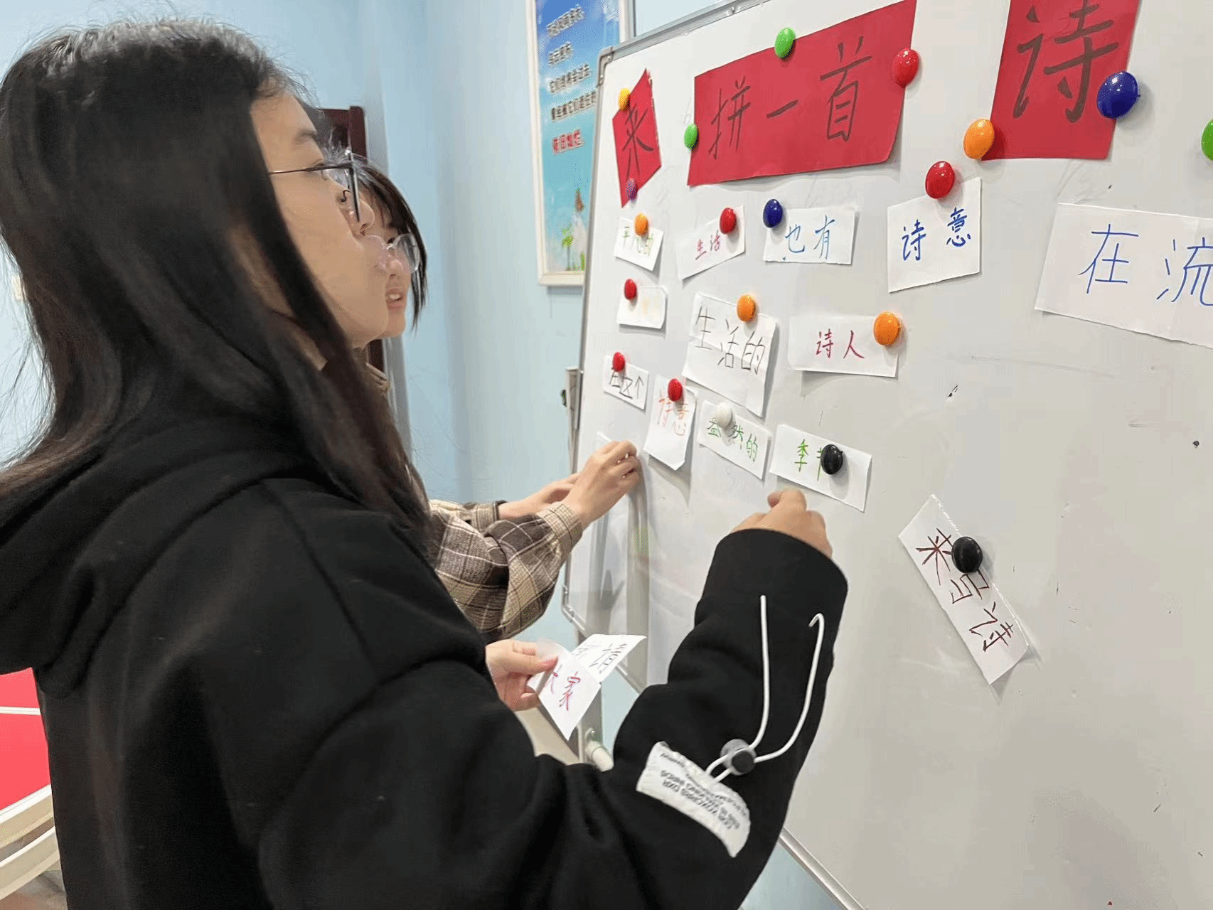 同学们拿着画笔在纸上写下自己最喜欢的一个词,并且将词帖在了黑板上。培养了同学们的创作才能与动手能力,提高了同学们的道德修养,促进了同学们的全面发展。希望通过本次的拼贴诗活动,心理协会的成员们都能进一步明确自己的人生理想,努力完善自身,争做时代新人。