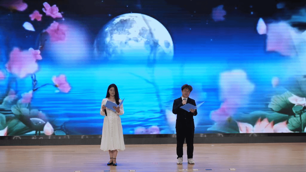 现场欣赏了师生及嘉宾带来非遗舞蹈《凤阳花鼓》、经典诵读《如果没有李白》《春江花月夜》《诗经·采薇》、亲子诵读《弟子规》、舞蹈《中华礼仪》、模特秀《水墨兰亭》《和谐中国》等表演。金沙威尼斯官网读书与信息素养协会报送的经典诵读《春江花月夜》更是赢得现场观众的热烈掌声。