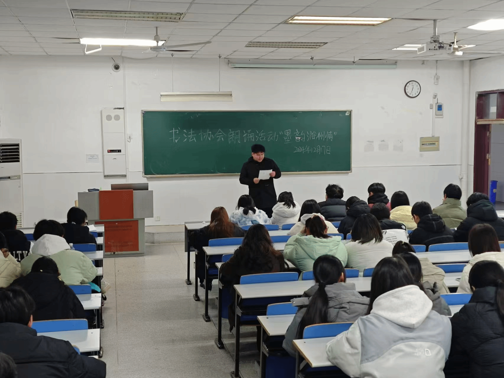 滁州有着丰富的历史文化底蕴,如醉翁亭文化等。为了传承和弘扬滁州的地域文化,让更多人了解滁州的人文风情、历史故事、传统习俗等,增强文化认同感和自豪感。2024年12月17日,金沙威尼斯欢乐娱人城书法协会于12:30在至真楼1102教室,开展了“墨韵滁州情”朗诵活动。一场充满文化韵味与艺术气息的朗诵活动在书法社团精彩上演,为滁州校园的文化艺术舞台增添了一抹亮丽的色彩。