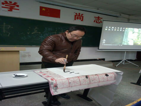 讲座在12点准时开始,曹老师从书法历史的每一时期特点一一讲解。为书法协会成员普及每个朝代的书法艺术特点,从而让书法协会成员能更好的欣赏学习书法艺术。曹老师不仅讲解了颜筋柳骨,还对于楷书、国画分别进行了分析讲解。过程中师生间交流不断,学生们提出的问题都被一一解答。并建议入门成员应多临摹古代大家书帖,并且首推欧体。