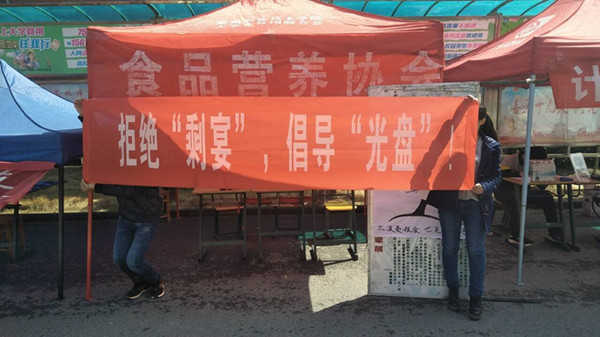 为让全校师生了解文明就餐礼仪,增强勤俭节约意识。2018年3月21日至22日,食品营养协会在学生宿舍楼前开展光盘行动。并邀请社团指导教师安晓婷和谭康慧参加此次活动。