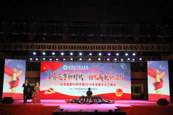 丹桂飘香、秋风送爽,由校团委主办为庆祝建国69周年暨2018年迎新生文艺晚会于2018年9月26日晚上7:00在校操场举行。校党委副书记、校长许雪峰,校党委副书记刘树俭,校党委委员、副校长吴大明,党委委员、院长助理、招生就业处处长穆松、驻滁某部队吕干事以及各系、部、处室领导与金沙威尼斯官网大一新生共同观看了晚会。