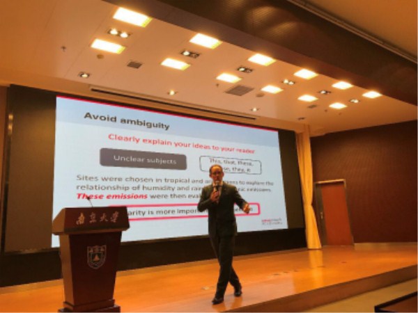 此次南京大学“自然科研讲堂”的主题聚焦于地球与环境科学领域的英文科技论文的写作技巧和投稿规则。土木工程系建筑环境社的部分社员代表在指导老师董波的带领下,参加了本次培训会。