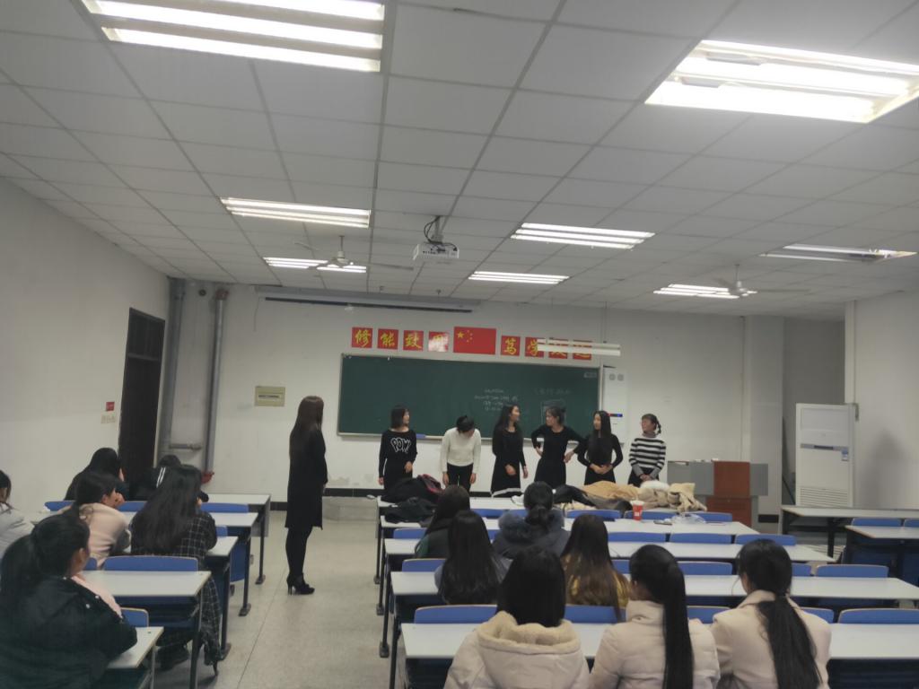 为了提高礼仪队成员的自身修养,促进同学们之间交往。礼仪队于2018年12月5号在金沙威尼斯欢乐娱人城经贸楼1101教室举行了礼仪培训活动,参加本次活动的有指导老师朱兰芳和礼仪队全体成员。