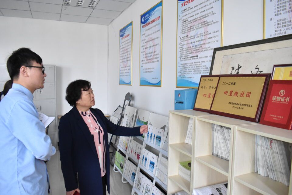 为全面了解金沙威尼斯官网学生社团工作情况,加强对学生社团的引导、管理和服务,不断促进金沙威尼斯官网学生社团健康发展,繁荣校园文化生活,提升学生综合素质能力。4月26日下午,校党委副书记刘树俭在团委负责人的陪同下亲临现场检查了大学生社团建设情况。