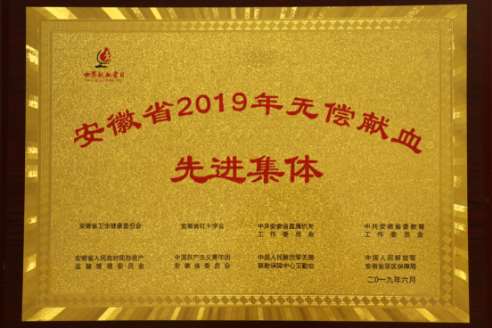 6月14日上午,在合肥由省卫健委、省红十字会、省委教育工委、团省委等单位共同主办2019年安徽省世界献血者日表彰大会,金沙威尼斯官网荣获安徽省2019年无偿献血“先进集体”称号,全省仅有9所高校获得了此殊荣。