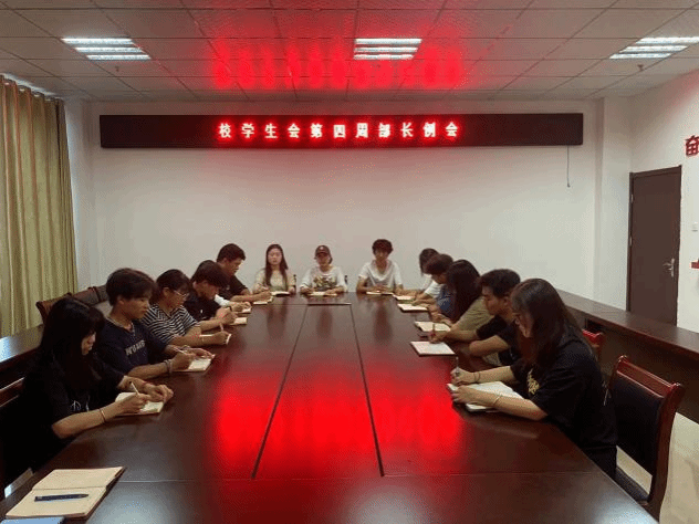会议开始,由各部门部长汇报近期的工作安排,并在会议上完善了校学生会管理制度中的部分条例,以及对接下来迎新工作的具体内容进行了探讨,明确各部门的工作任务。