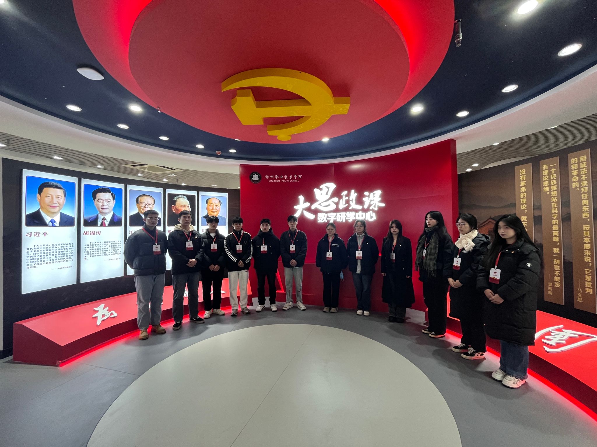12月15日下午,金沙威尼斯官网团委组织2023-2024学年青年马克思主义者培养工程培训班学员代表参观“大思政课”数字研学中心,学员代表们分别学习了马克思主义理论的源头;百年党史的时间段划分;新时代中国特色社会主义展区。党的十九大、十九届六中全会提出的“十个明确”、“十四个坚持”、“十三个方面成就”习近平新时代中国特色社会主义思想的主要内容。