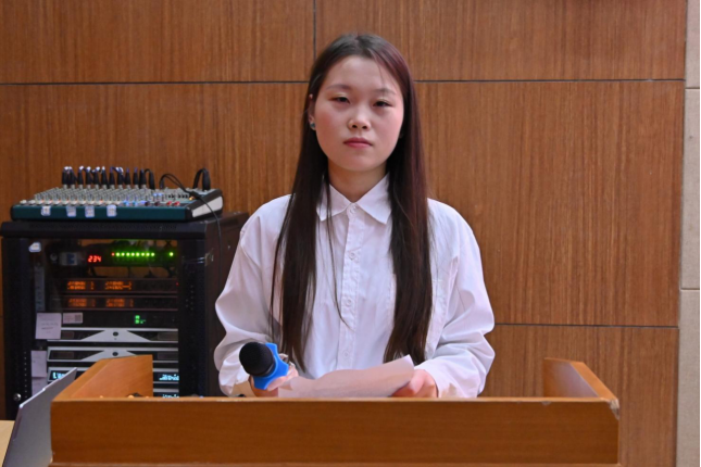 2023-2024学年青马班优秀学员都燕同学作代表发言,她介绍了自己一年学习的经历和收获,并表示将会把结业作为新的起点,接续奋斗。