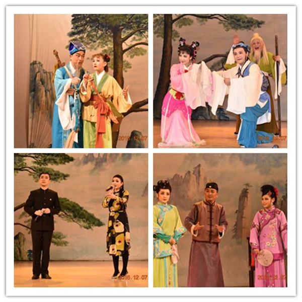 演出开始,一曲《打猪草·对花》充分展现出浓郁的安徽地域文化特色,接着黄梅戏经典剧目《天仙配》、优秀传统小戏《戏牡丹》、经典唱段《十五的月亮为谁圆》、《谁料皇榜中状元》等节目接连上演。其中黄梅戏经典剧目《六尺巷》,演员用扎实的唱功和完美的表演赢得现场观众阵阵掌声,体现了中国传统美德,让广大师生充分领略了黄梅戏的独特魅力.