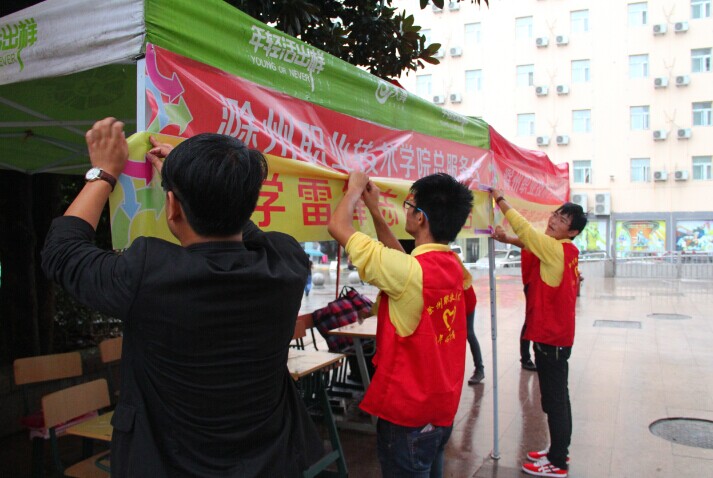 9月13、14日是我院2014级新生报到的日子,为了确保新生接待工作的有序进行,院团委提前谋划,在院学生会、社团联合会等学生组织共招募近百名志愿者,分别在校内、滁州站、滁州北站、汽车站、汽车南站设立了志愿者服务站,负责接站迎新和引导咨询,接待新生和家长2000余人,为学院迎新工作贡献了力量。