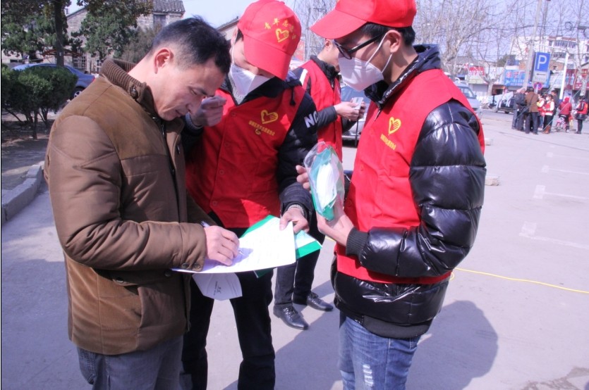 3月5日下午,来自我院大学生社团联合会和绿源环保协会的30多名志愿者走上街头,为人们宣讲防治雾霾的基本知识,免费发放防雾霾口罩,号召广大市民以自身行动抗击雾霾,保护环境。我们主动联系了二院医生免费为居民测量血压,回答居民健康方面的咨询。志愿者们还针对市民开展了防雾霾知识调查问卷活动。
