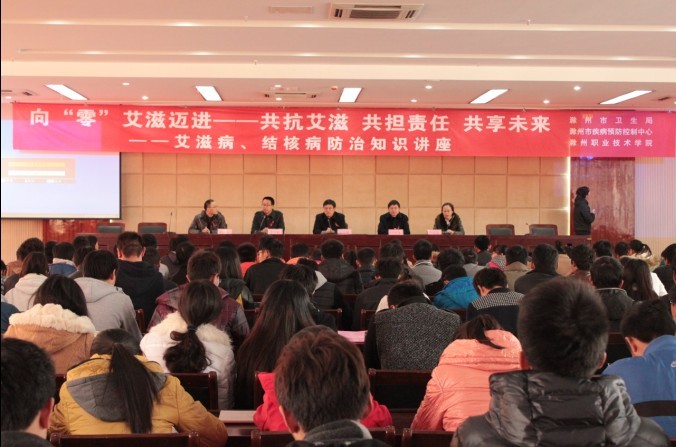 11月27日下午,由滁州市卫生局、滁州市疾病预防控制中心和金沙威尼斯欢乐娱人城联合举办的“艾滋病、结核病防治知识讲座”在综合楼五楼报告厅举行。