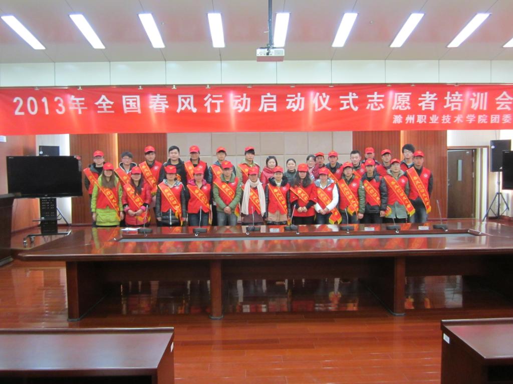 为了做好此次活动的服务工作,2013年1月17日下午,在综合楼11楼学术报告厅召开了“春风行动”志愿者培训会。培训会上院团委程诚副书记、朱婷婷老师对志愿者们的工作做了具体的分工,最后,院团委王蓓蓓书记对志愿者们提出了24个字的要求,要求志愿者们“高度重视,明确任务;遵守纪律,服从分配;注意形象,微笑服务”,