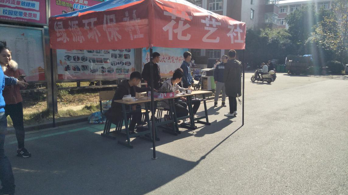 为了增强大学生环境保护的意识,激发大学生环境保护责任感。2017年11月25日早上10点半,花艺社跟绿源环保协会在女生宿舍一号楼楼下举办用品瓶子兑换多肉活动。该活动以“传播绿色文明,“植”因有你参与”为主题,旨在传递环保理念。现场气氛十分热烈,活动还未正式开始,就已经有很多学生过来询问,希望可以积极参加绿植领养的活动,为身边添加一抹绿色。活动正式开始后,同学们的热情更加高涨,在大二的学长和学姐的带领下每一位前来兑换多肉的小伙伴都领取了自己喜欢的植物。仅过了三个多小时,现场的二十几盆多肉都找到了属于自己的主人。 此次活动应主题要求,将绿植领养。倡导绿色健康的生活方式。
