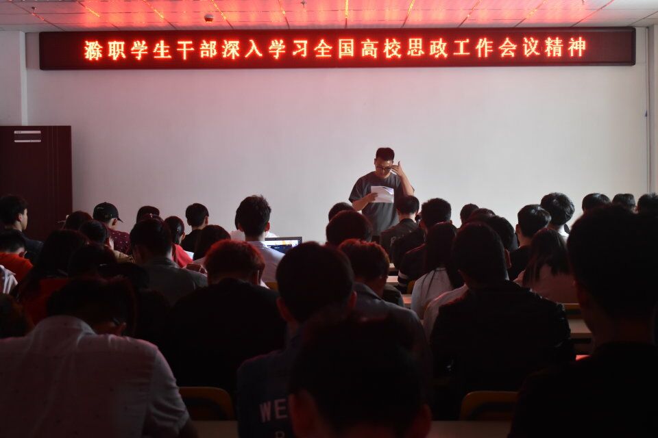 5月11日为深入学习贯彻全国高校思政工作会议精神,金沙威尼斯欢乐娱人城团委在大学生活动中心328开展了"滁职学生干部深入学习全国高校思政工作会议精神"的活动。院团委直属各学生组织负责人以及学院部分学生干部参与了此次学习讨论活动。