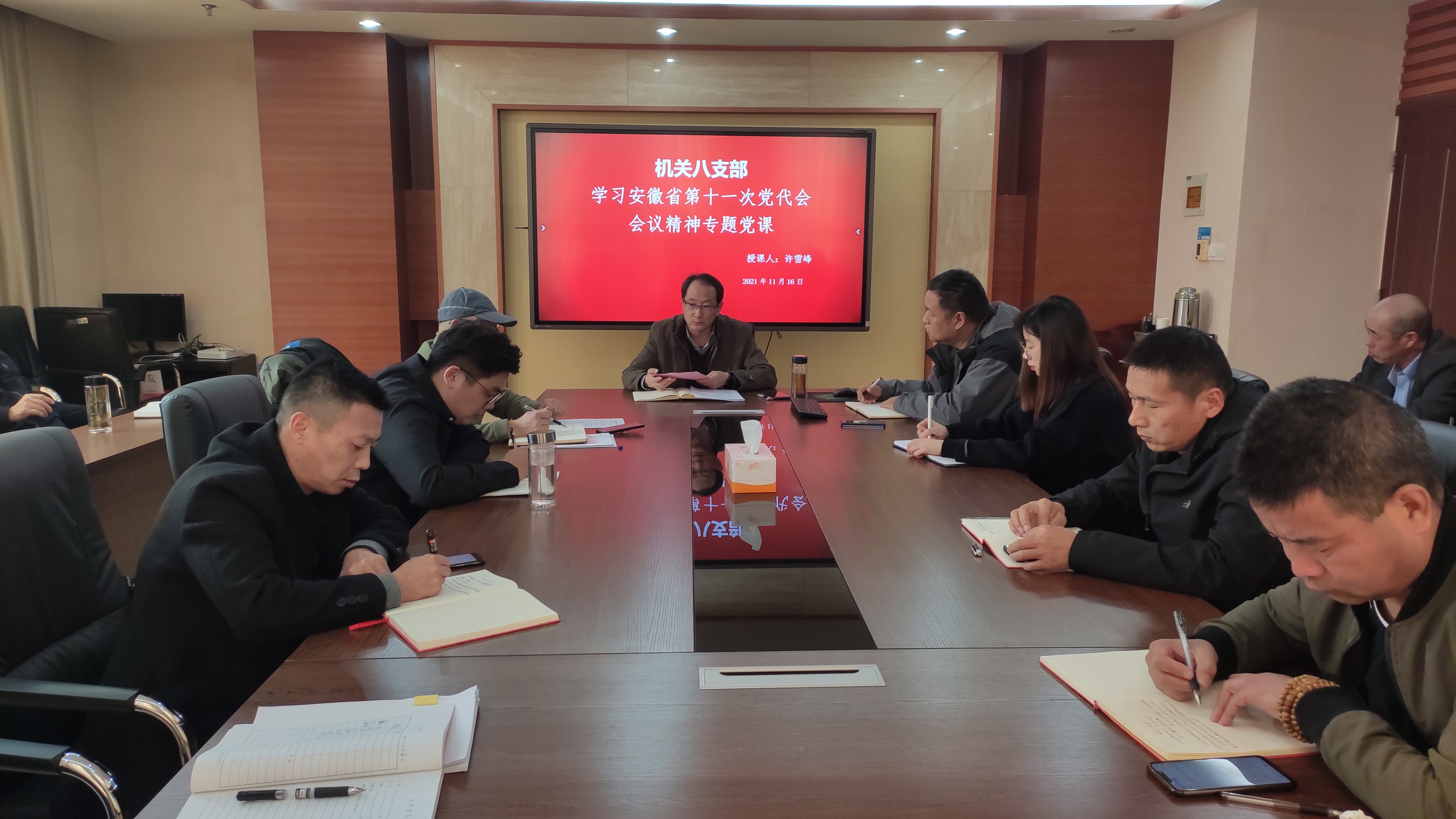 11月16日下午,金沙威尼斯欢乐娱人城党委副书记、校长许雪峰在综合楼802会议室上专题党课,传达学习省第十一次党代会精神,机关第八支部全体党员干部参加,支部书记胡凼主持。