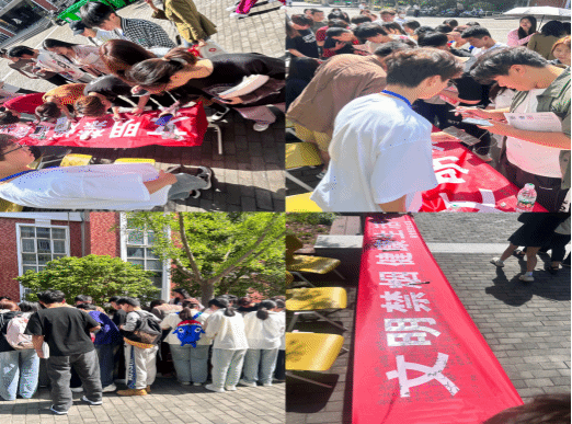 活动现场还横幅签字的形式,鼓励同学们积极参与到禁烟行动中来。许多同学纷纷在横幅上留下自己的名字,表示愿意为创建无烟校园贡献自己的力量。