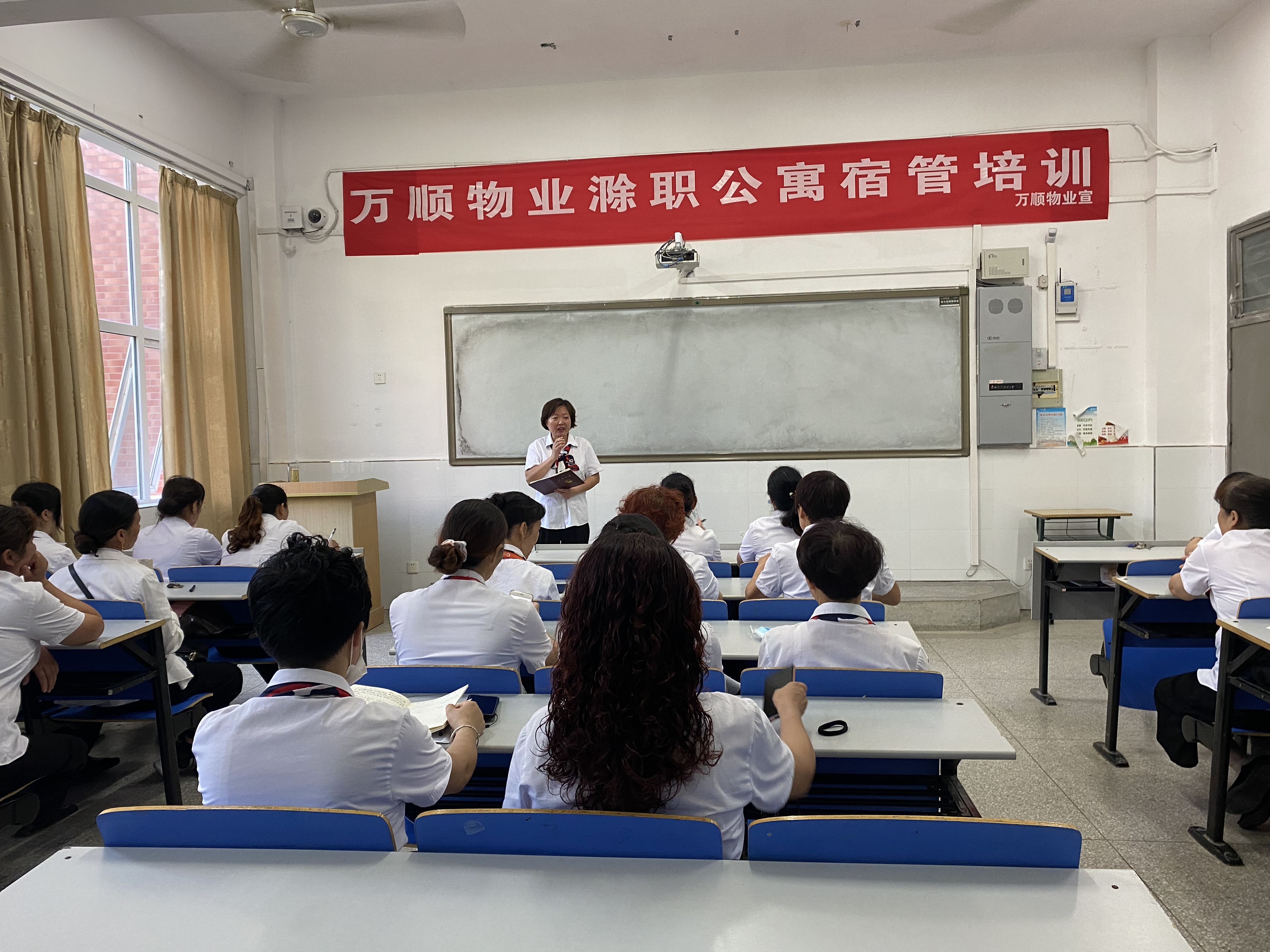 为进一步强化学生公寓管理,提升服务质量,确保公寓安全稳定。后勤服务中心于7月7日至7月12日在教学楼1108教室开展为期6天的公寓管理人员安全教育与标准化服务培训。后勤服务中心公寓管理科陆凤林科长、万顺物业服务有限责任公司李红副总经理出席了会议。培训会由公寓管理中心主任朱明春主讲,公寓管理中心40余名管理及服务人员参加了此次培训。