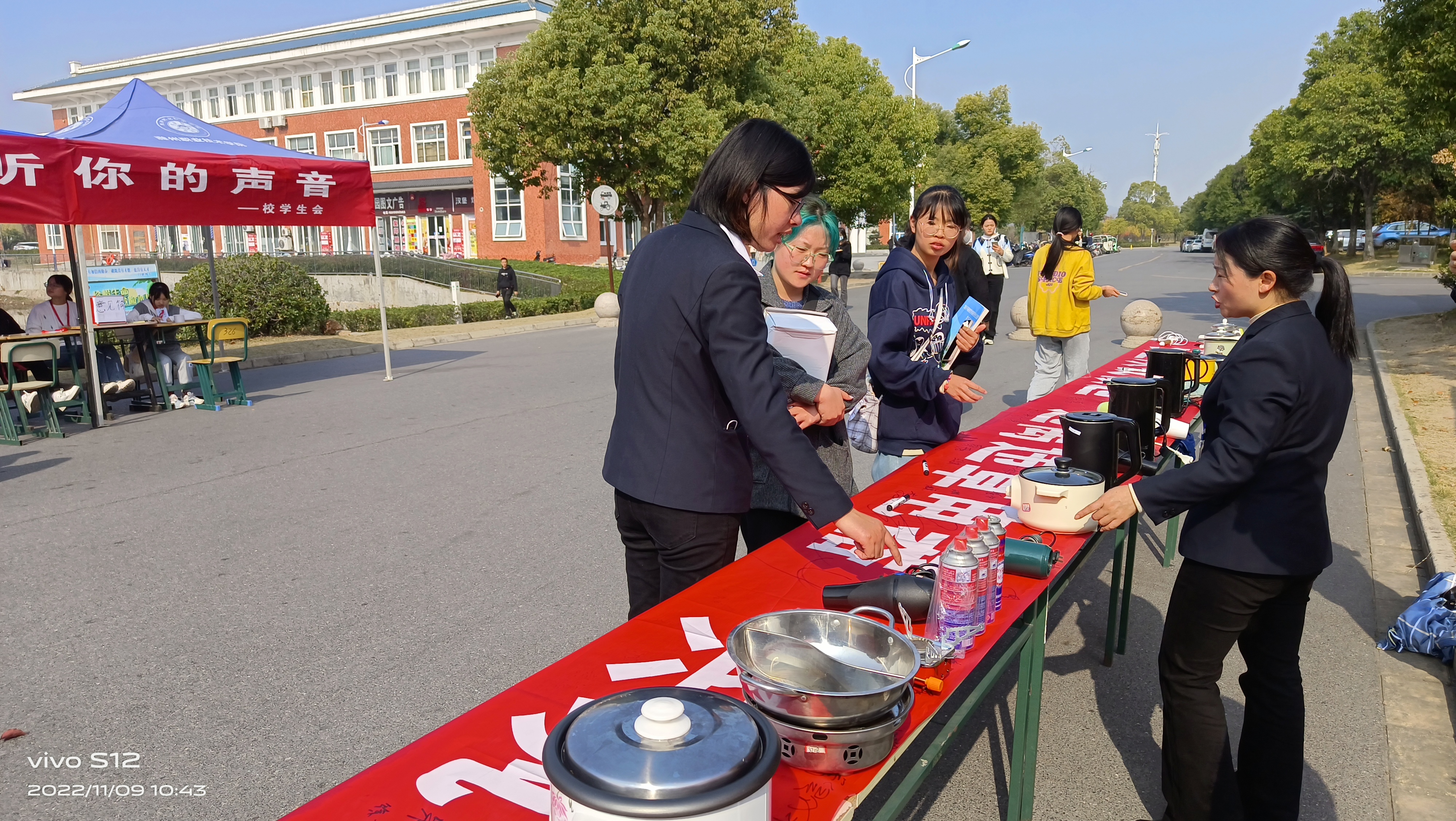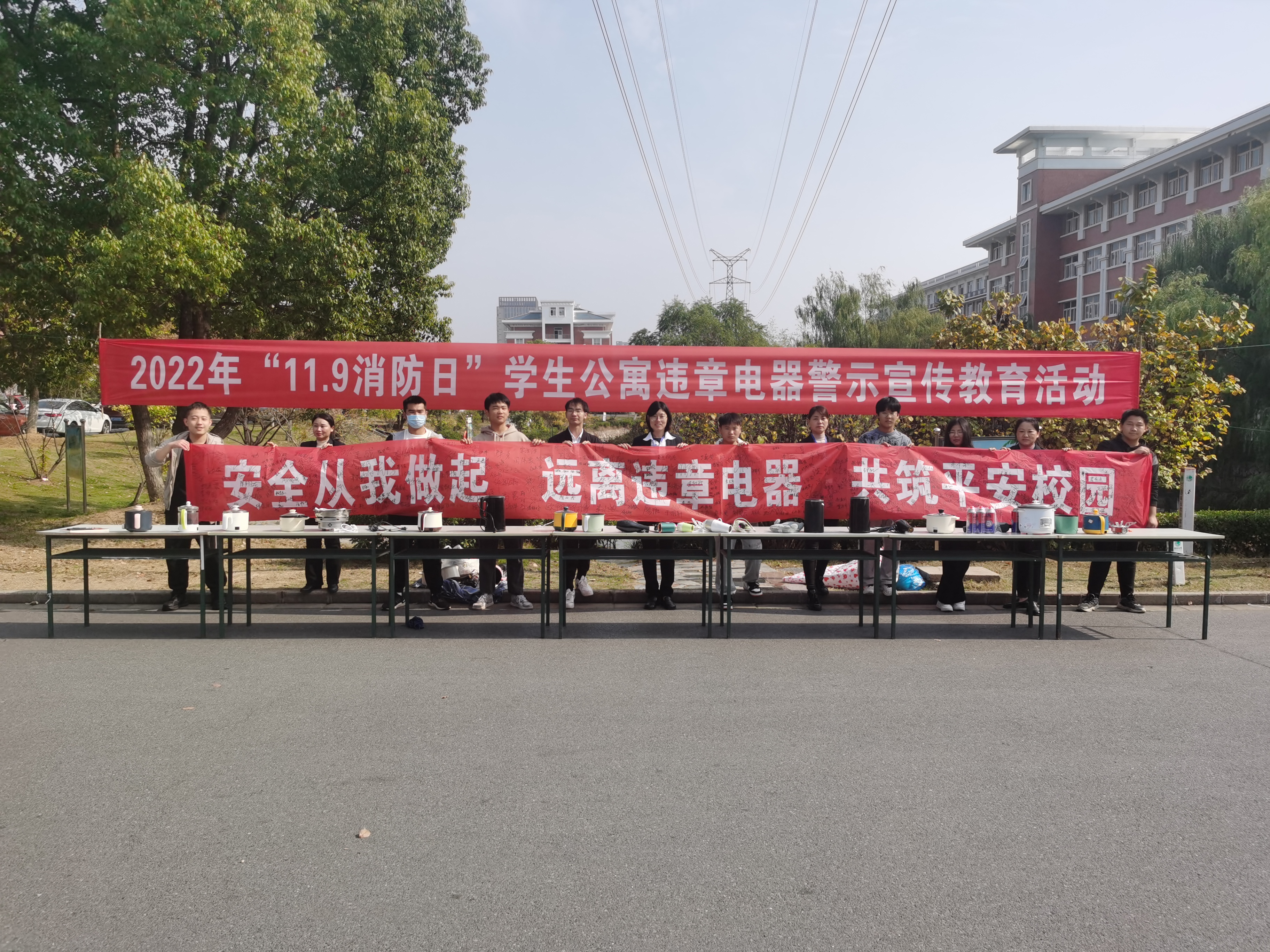 为加强学生宿舍安全管理工作,提高学生安全防范意识。11月9日,后勤服务中心开展2022年“119消防日”学生公寓违章电器警示宣传教育活动。
