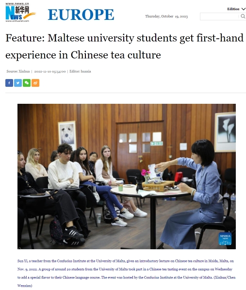 教学工作之外,该教师不忘教育初心,牢记推广中国文化的使命,讲好中国故事,传播好中国声音。其组织的茶艺、书法、风筝、春节、端午节、孔院开放日、“汉语桥”世界大学生中文比赛等中国文化活动先后被新华网、人民网、中国日报、CCTV4中文国际频道、新华社新媒体等主流媒体专题报导30余次。此前,该教师曾在《人民日报》发表署名文章“我想寿比珠穆朗玛峰”,引发了广泛的社会影响,在教育部国家公派出国教师2022年度考核中获评“优秀”等次。